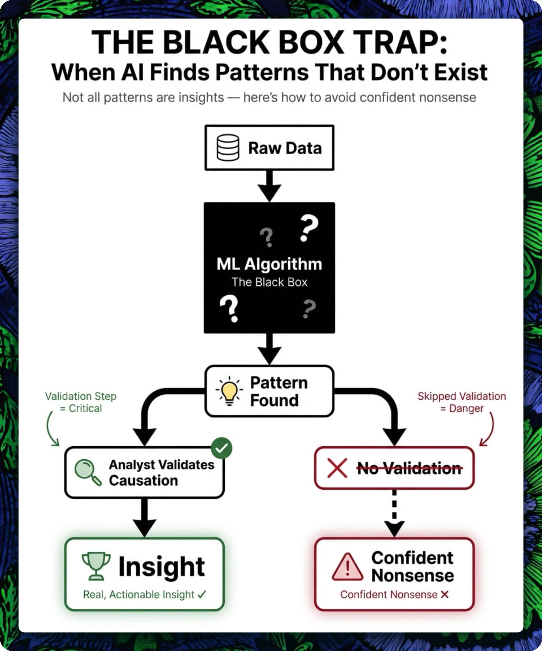 If your answer is “the algorithm identified this as a key driver,” you’ve given them nothing they can act on. You’ve just dressed up a correlation in a suit and hoped nobody asks follow-up questions. (They will.)