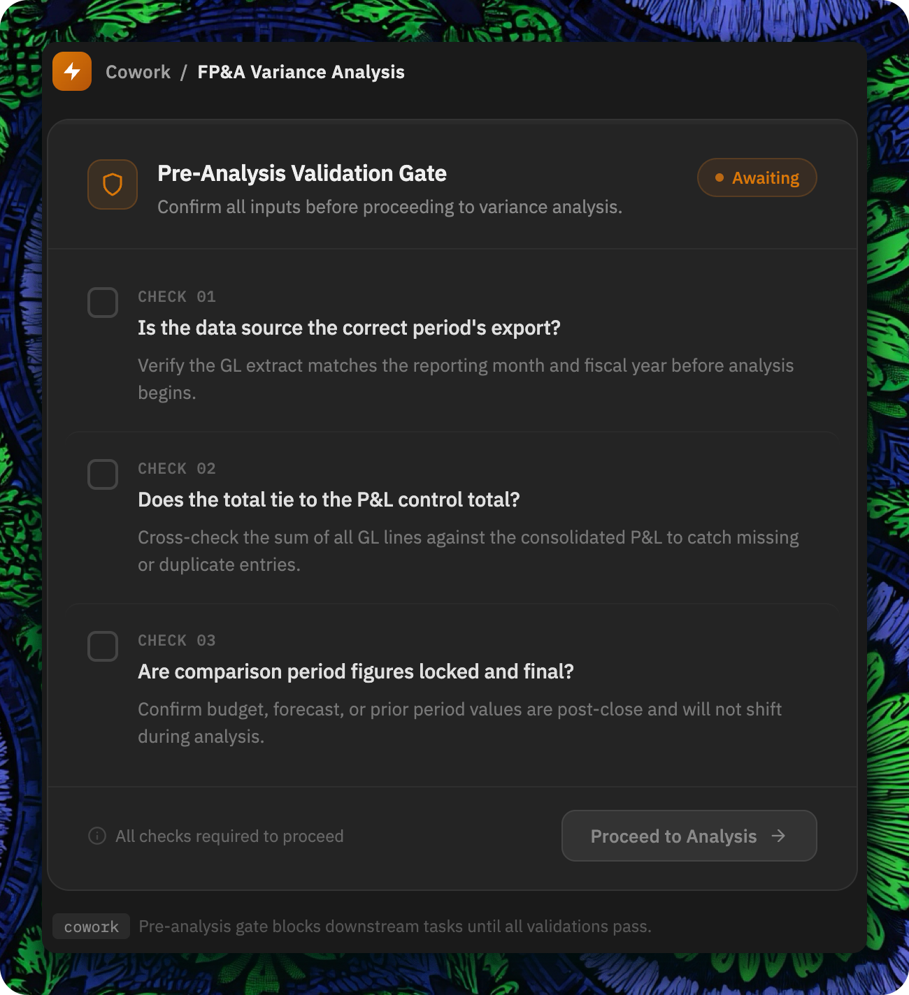 Before I let AI touch a variance or a forecast driver, I answer three questions manually: